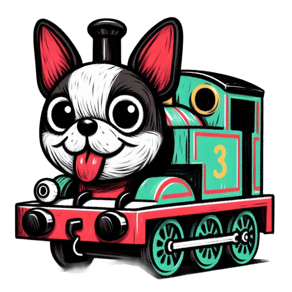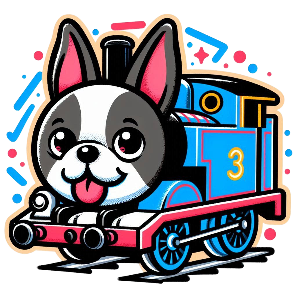 こっちゃん:ボステリ機関車ビックリマン(コラージュ版) こっちゃん X Facebook はてブ LINE コピー 2025.05.162025.05.22 プロンプト: 機関車トーマスの顔が可愛いシルバニアフィギュアのボストンテリアの子犬になっているラフ画イラスト 少しだけベロが出ている デフォルメされたマスコットキャラクターの顔はスッキリしている 犬の耳がピンと立っている 目がくりっと丸い 背景は白 カラフルでポップなイラスト 機関車は長い