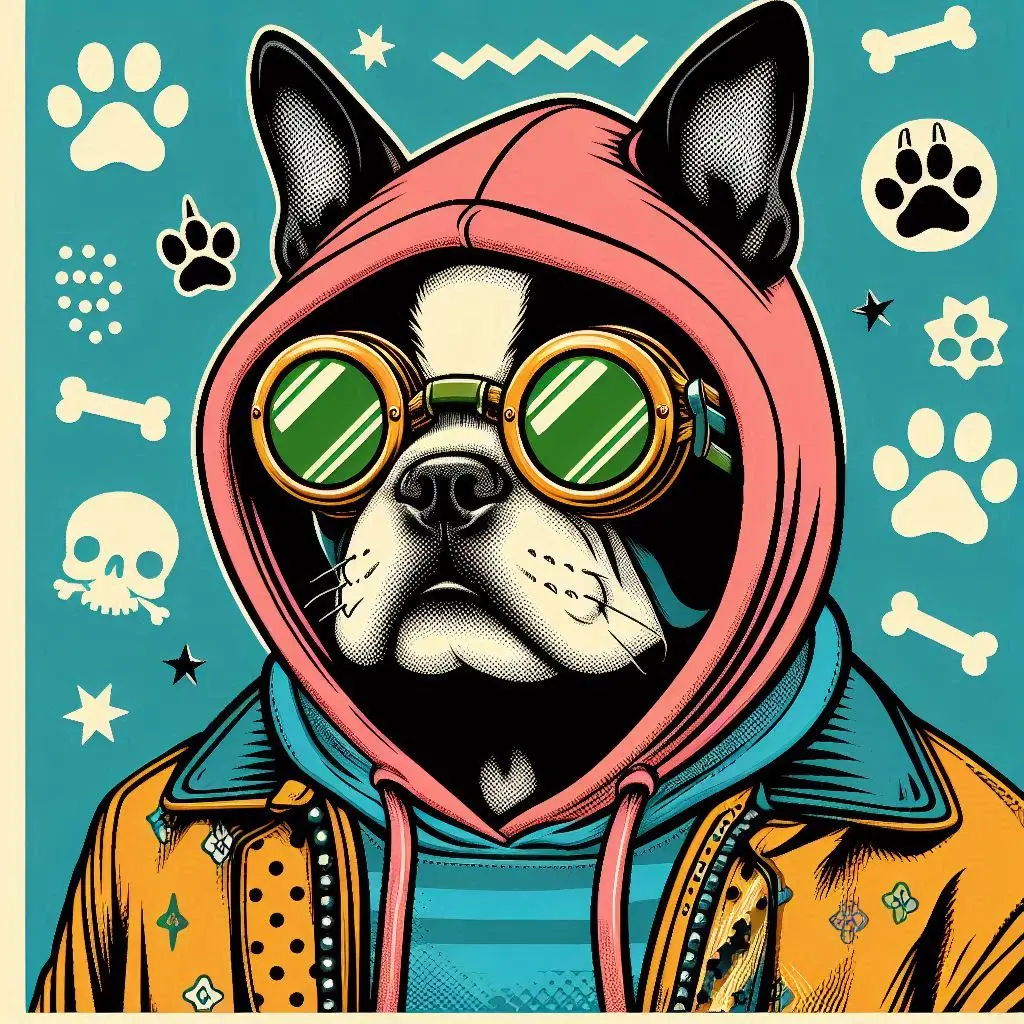 こっちゃん:ボストンテリアゴーグル系ポップアート