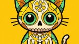 ディティールが細かい アール・ヌーヴォー風カラフルなフラワーフレーム クールジャパンの漫画風 ラフ画 フレームの中に可愛い女性 女性は猫の耳 神秘的な美しい顔 一人 顔を大きくレイアウトする 背景は淡い色 全体的にシンボリックな構図
