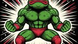 大きな金色のキノコ茸の上に乗った金色のカエル骸骨。劇画の漫画の手描き感が残るラフ画タッチ。全然的なディティールを細かく。グラデーションを使わないシンプルなカラー。ファスナー多数付き金色全身タイツに白い骸骨スケルトン模様。カエルの顔にドクロマーク。1人。カエルより大きな金色のキノコの上にいる。背景にカラフルなアール・ヌーヴォー風のお花の額縁フラワーフレームを付ける。
