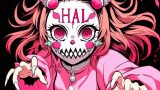 荒木飛呂彦風の漫画ラフ画、女性レスラー、ピンクのスケルトンタイツ、ドクロマーク、レスラーマスク、覆面レスラー、覆面マスク、頬が赤丸ほっぺた、ホッペタが赤くて丸い、ほっぺたレッド、全身、レスラーブーツ、フルボディ、肩に小鳥、1人、水彩カラー、周りにフラワーフレーム